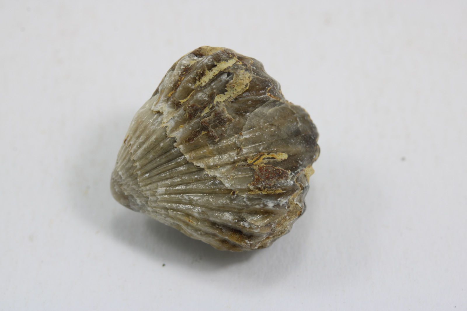Ramenonožec ( brachiopod ) z obdobia druhohôr ( krieda ), krajina pôvodu je Maroko - Immouzer, rozmery v zorky sú cca: 2 x 1,5 x 1,5 cm.