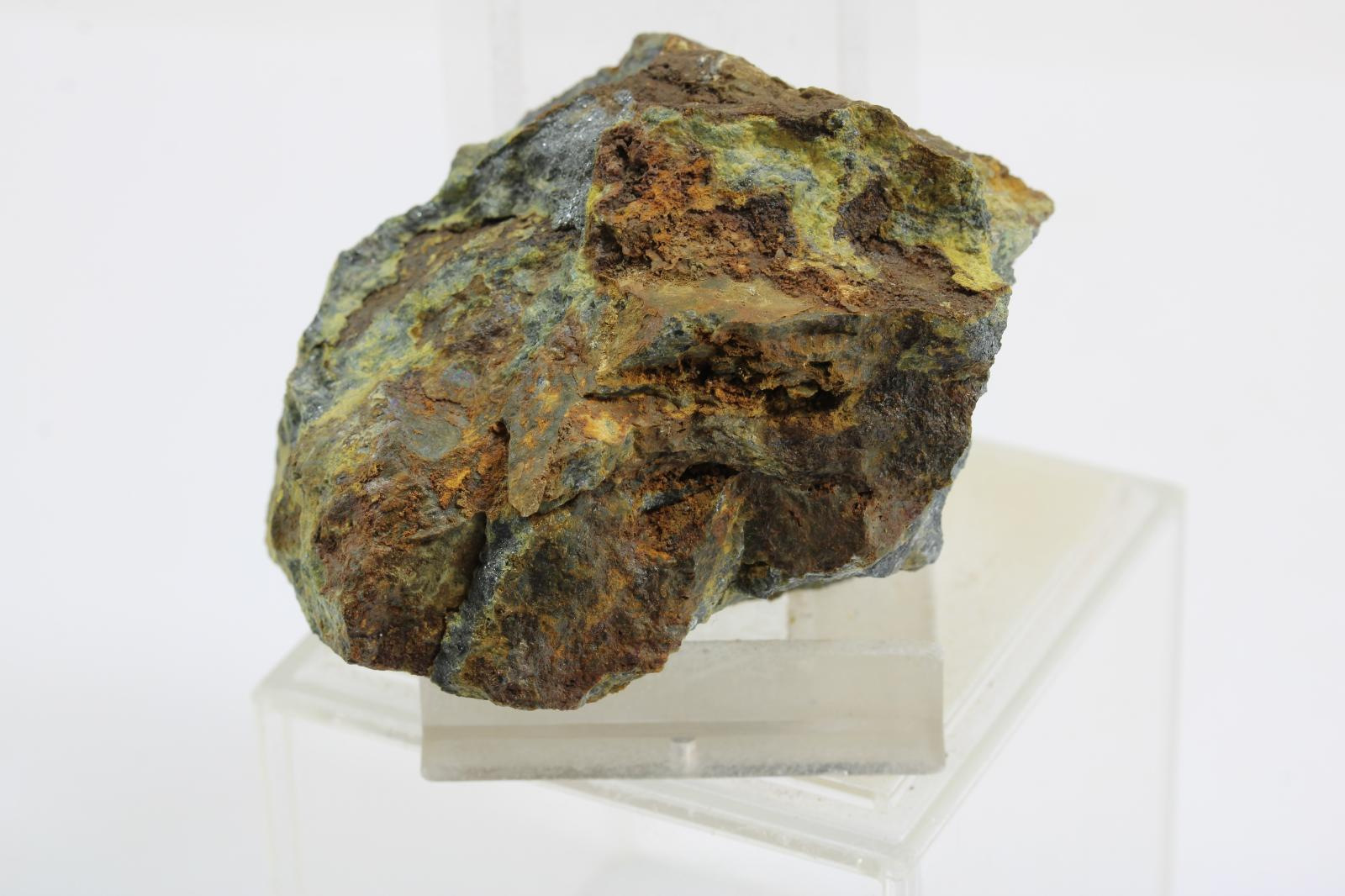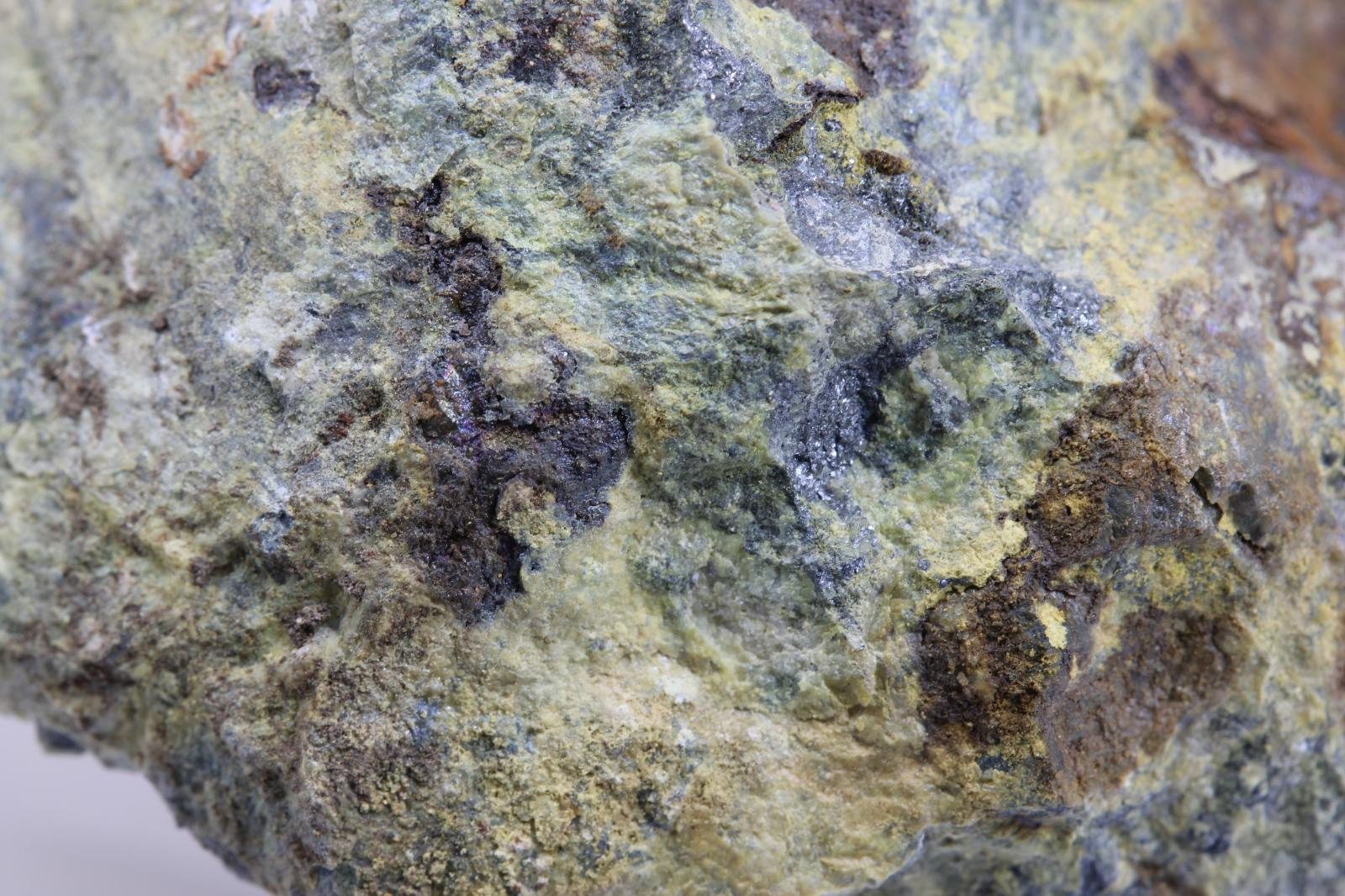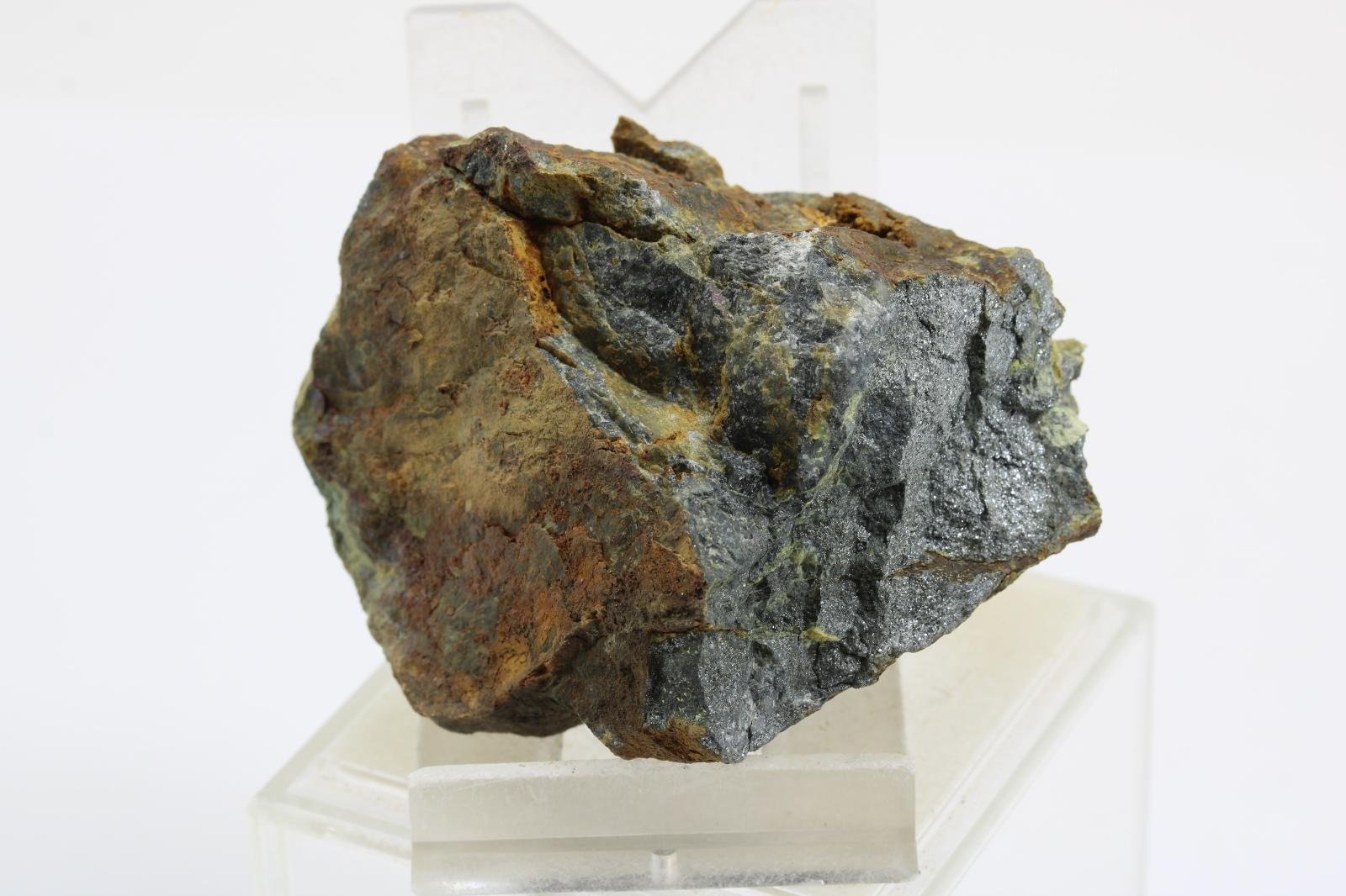 Cervantit so stibikonitom, žlté okry Sb na antimonite, krajina pôvodu je Slovensko - Pezinok, rozmery vzorky sú cca: 5 x 5 x 4 cm.