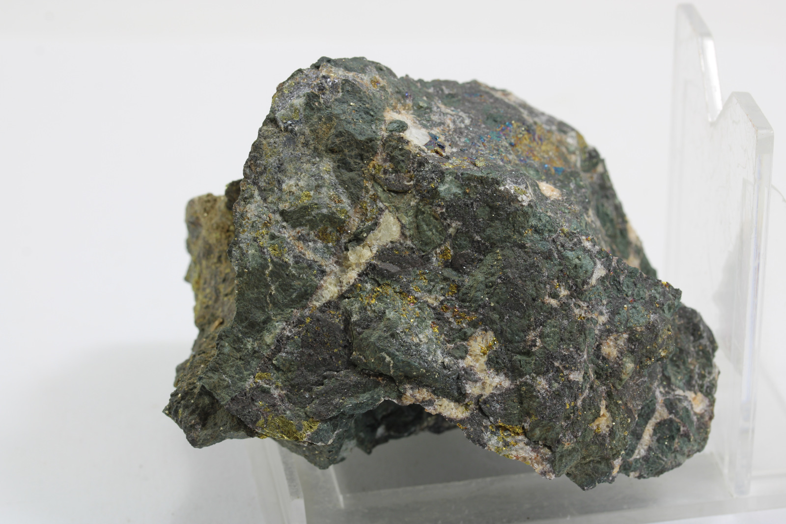Chalkopyrit s galenitom, krajina pôvodu je Slovensko - Banská Štiavnica, rozmery vzorky sú cca: 10 x 8 x 5,5 cm.