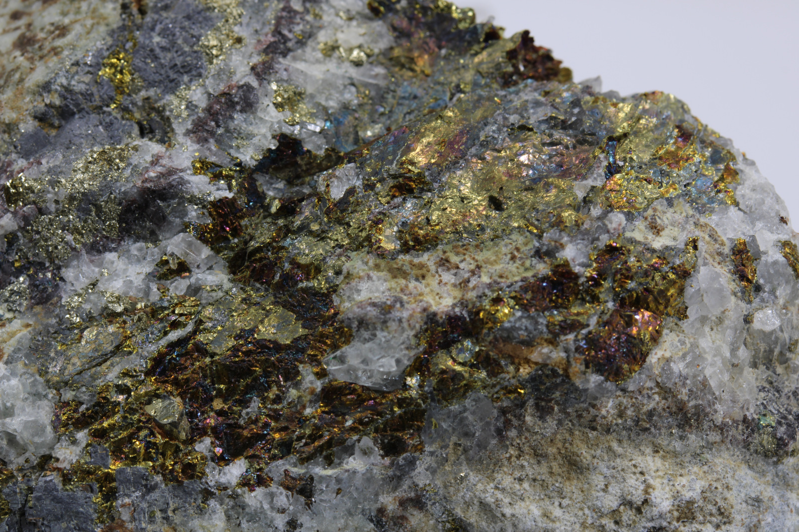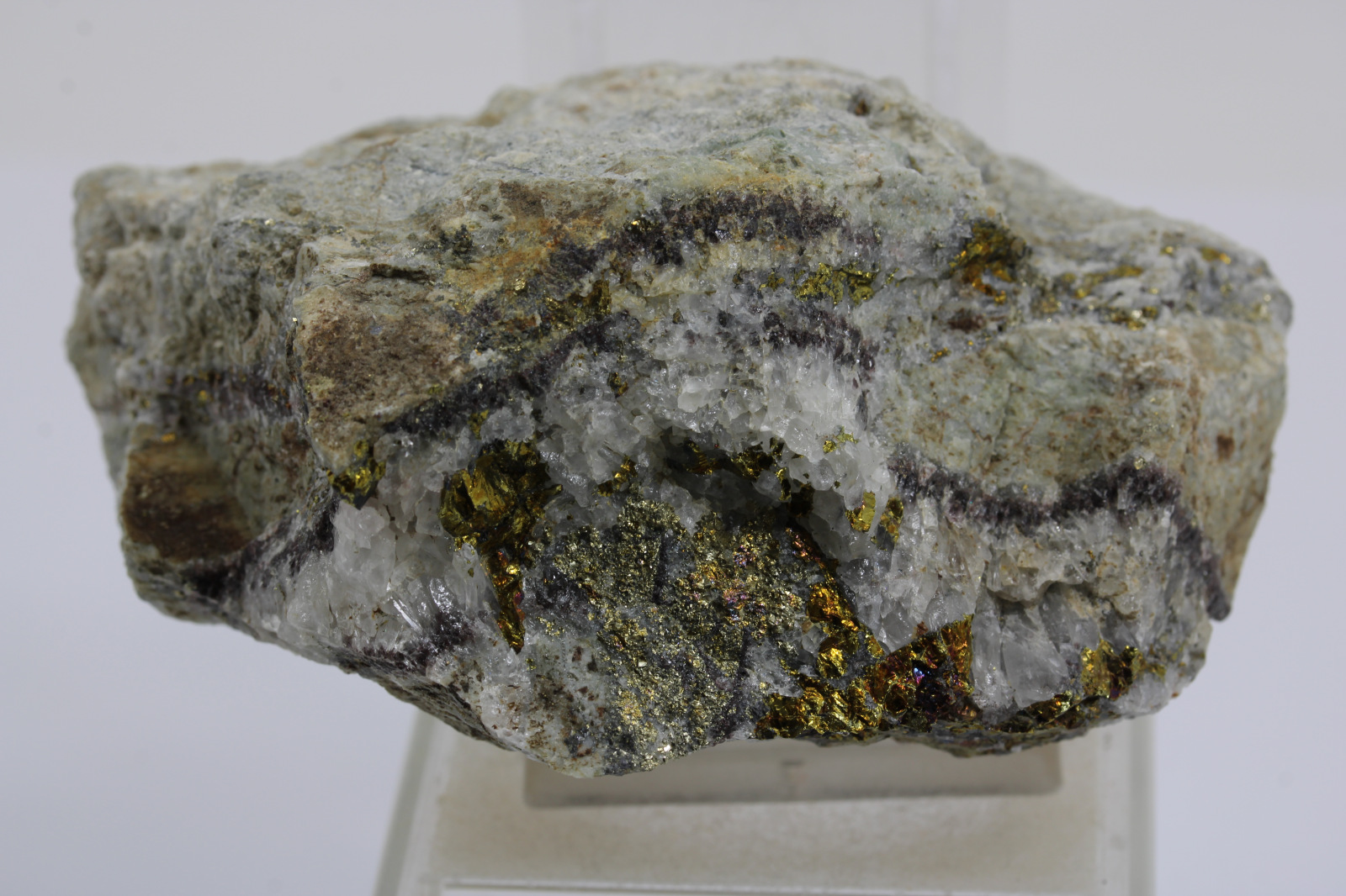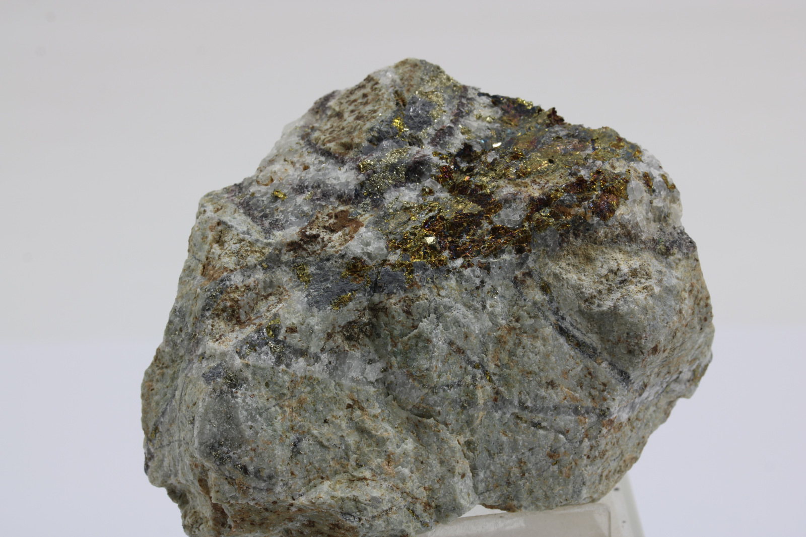 Chalkopyrit, krajina pôvodu je Slovensko - Banská Štiavnica, rozmery vzorky sú cca: 8 x 7 x 3 cm.