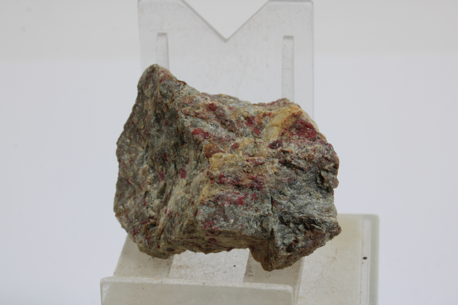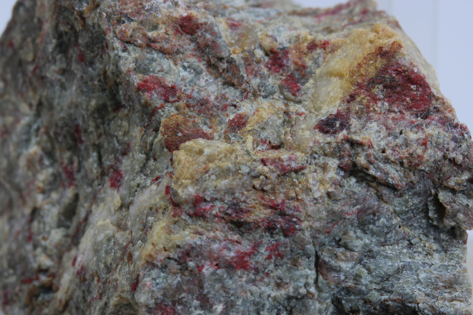 Cinabaryt, krajina pôvodu je Slovensko - Gelnica, rozmery vzorky sú cca: 3 x 4 x 3 cm.