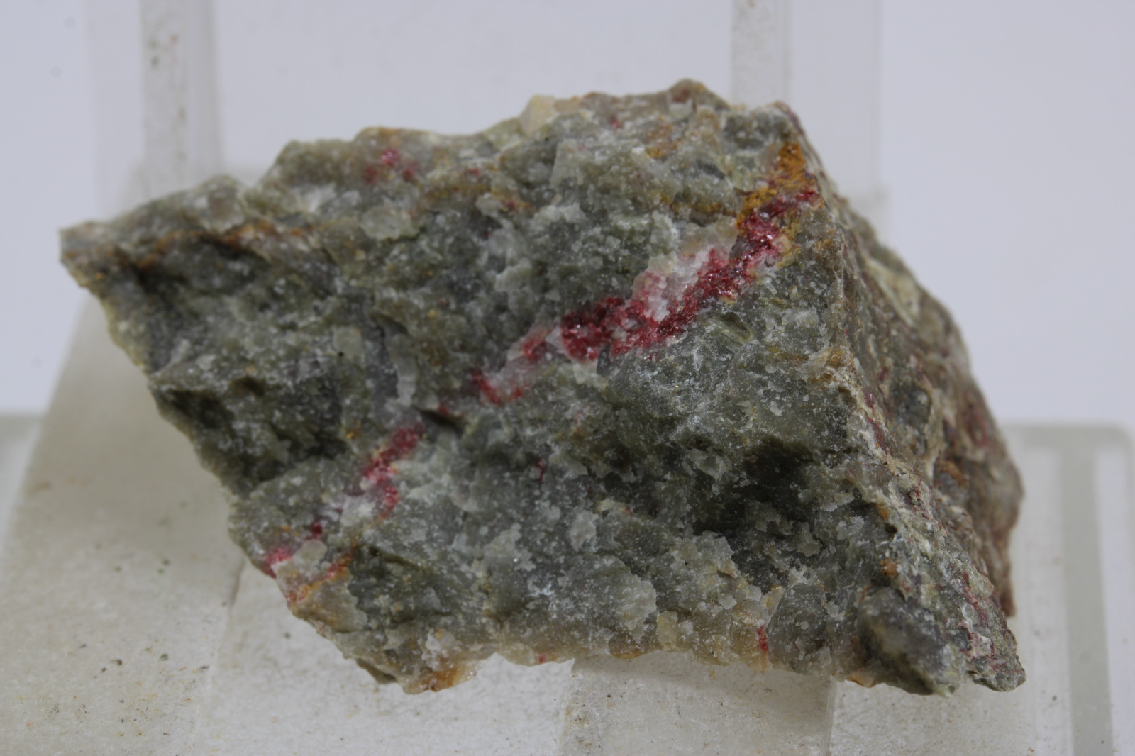 Cinabaryt, krajina pôvodu je Slovensko - Gelnica, rozmery vzorky sú cca: 3 x 2 x 1,5 cm.