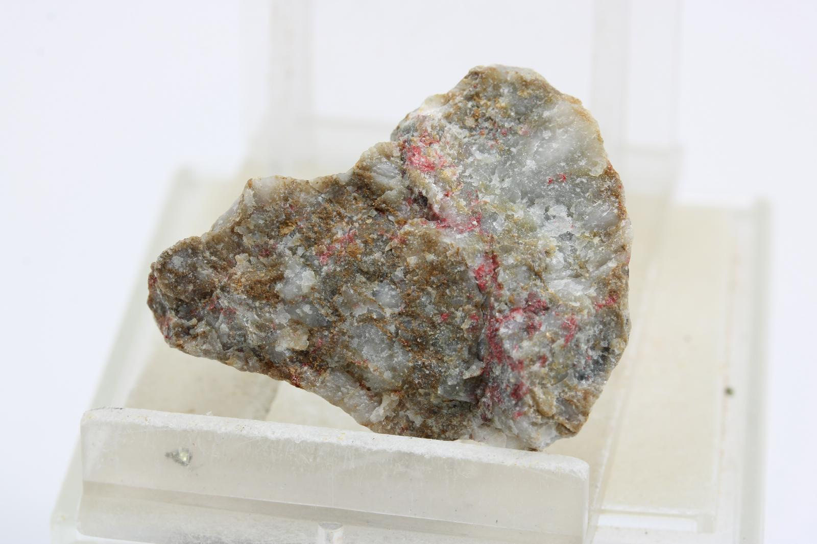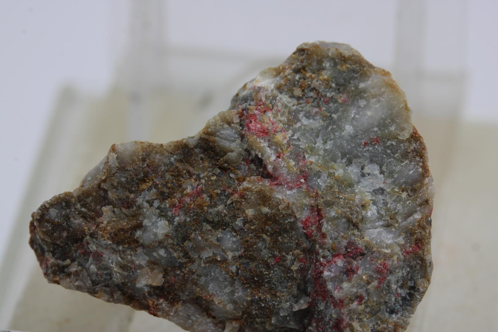 Cinabaryt, krajina pôvodu je Slovensko - Gelnica, rozmery vzorky sú cca: 3 x 3 x 2,5 cm.