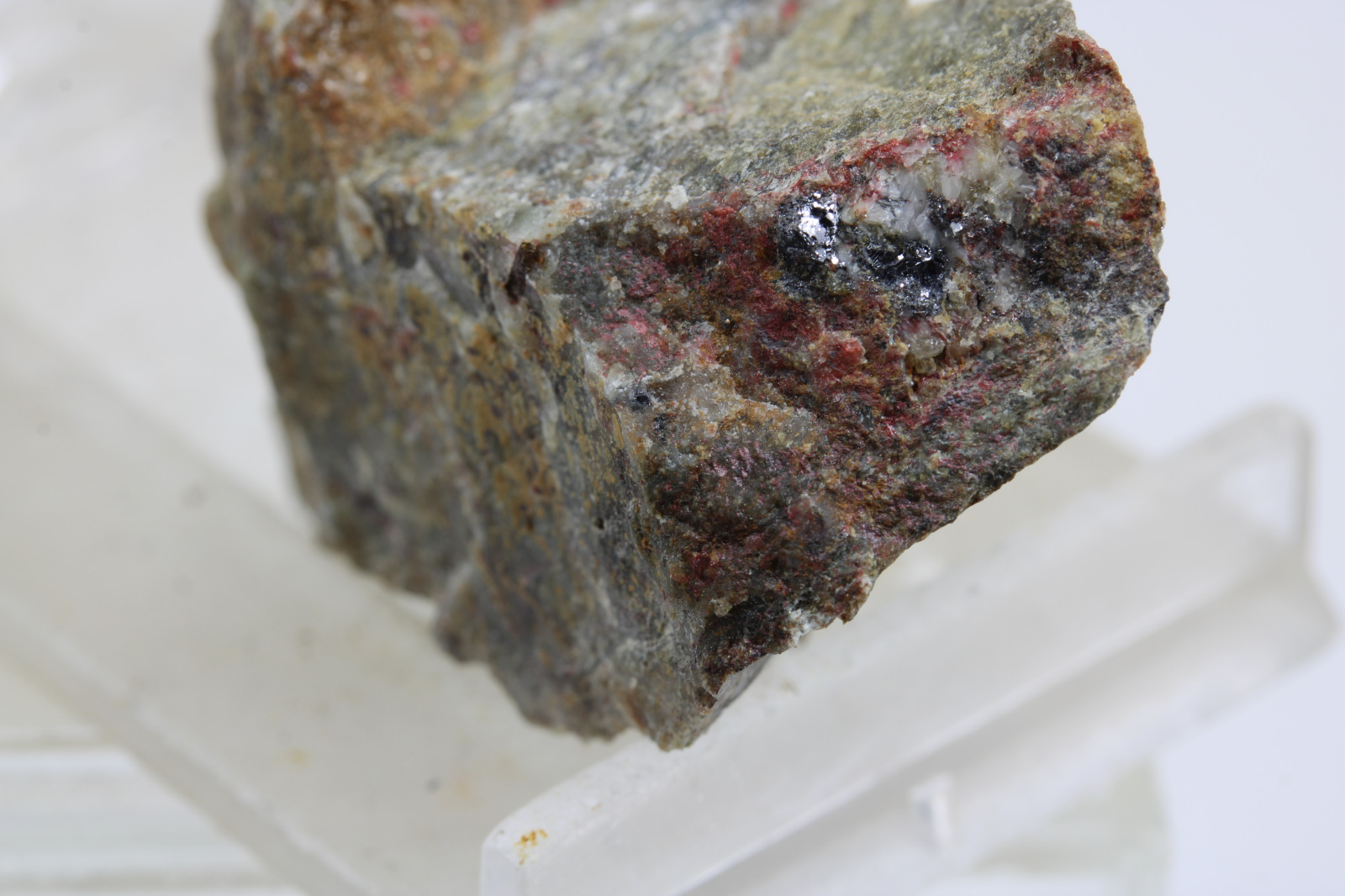 Cinabaryt s hematitom - odroda spelularit, krajina pôvodu je Slovensko - Gelnica, rozmery vzorky sú cca: 4 x 2 x 2 cm.