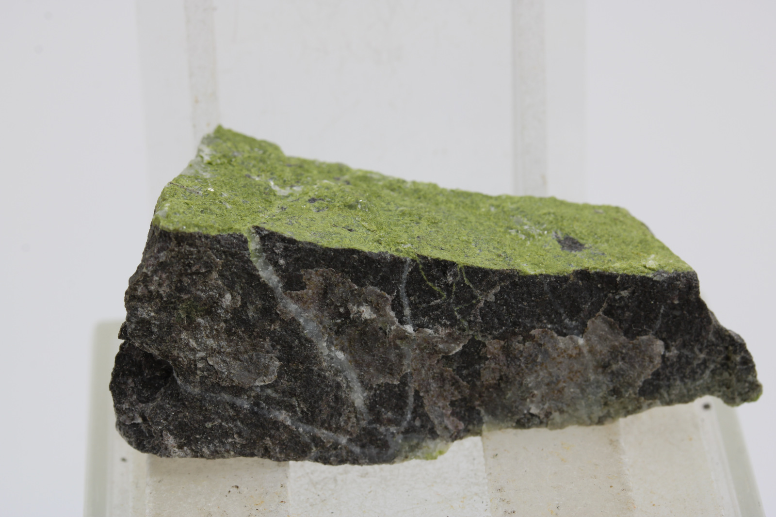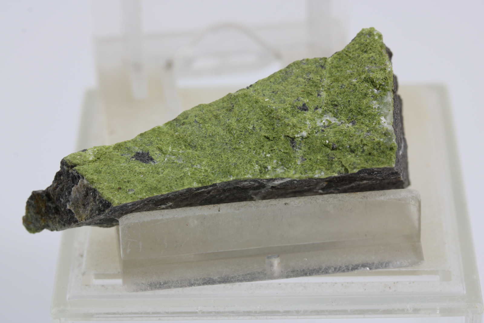 Epidot, krajina pôvodu je Slovensko - Lošonec, rozmery vzorky sú cca: 4 x 1,5 x 2 cm.