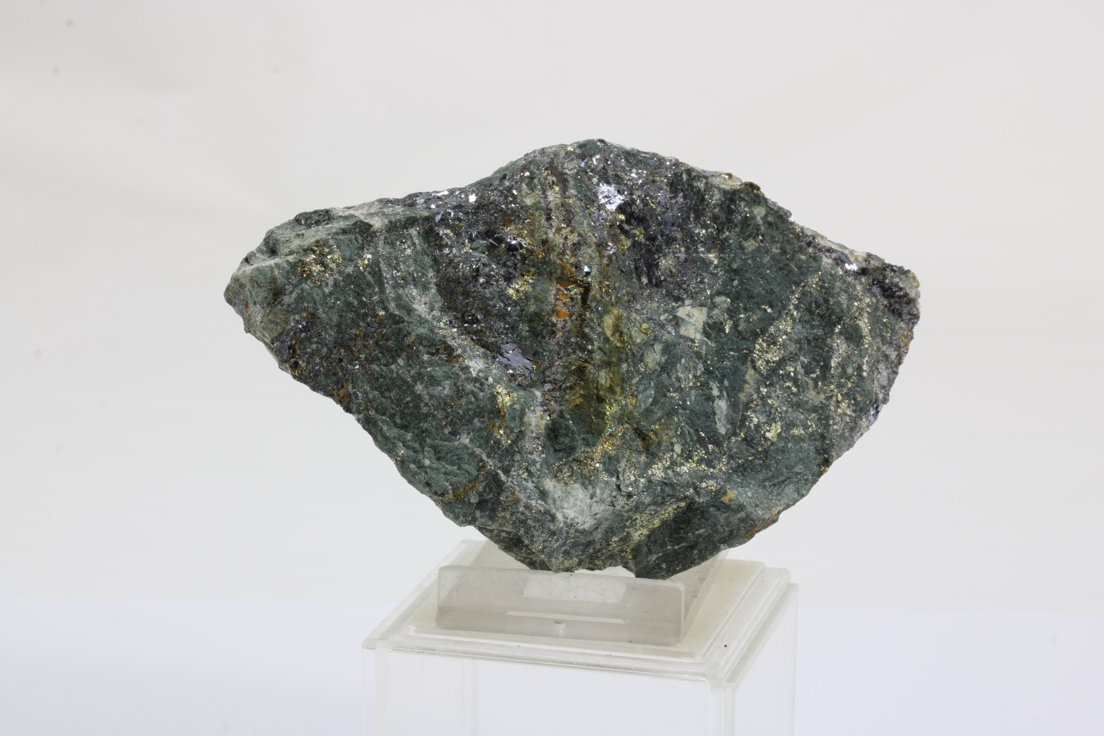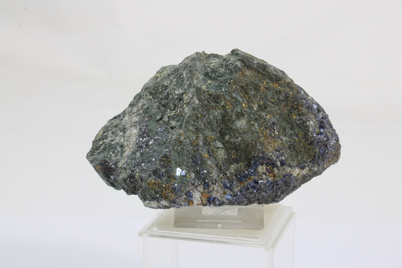 Galenit s pyritom a chalkopyritom, krajina pôvodu je Slovensko - Banská Štiavnica, rozmery vzorky sú cca: 10 x 6 x 4 cm.