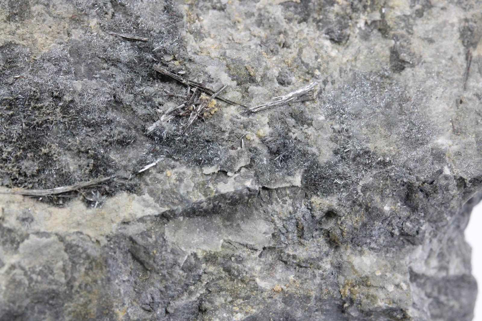 Kermezit s antimonitom a grafitom, krajina pôvodu je Slovensko - Pezinok, rozmery vzorky sú cca: 10 x 7 x 3,5 cm.