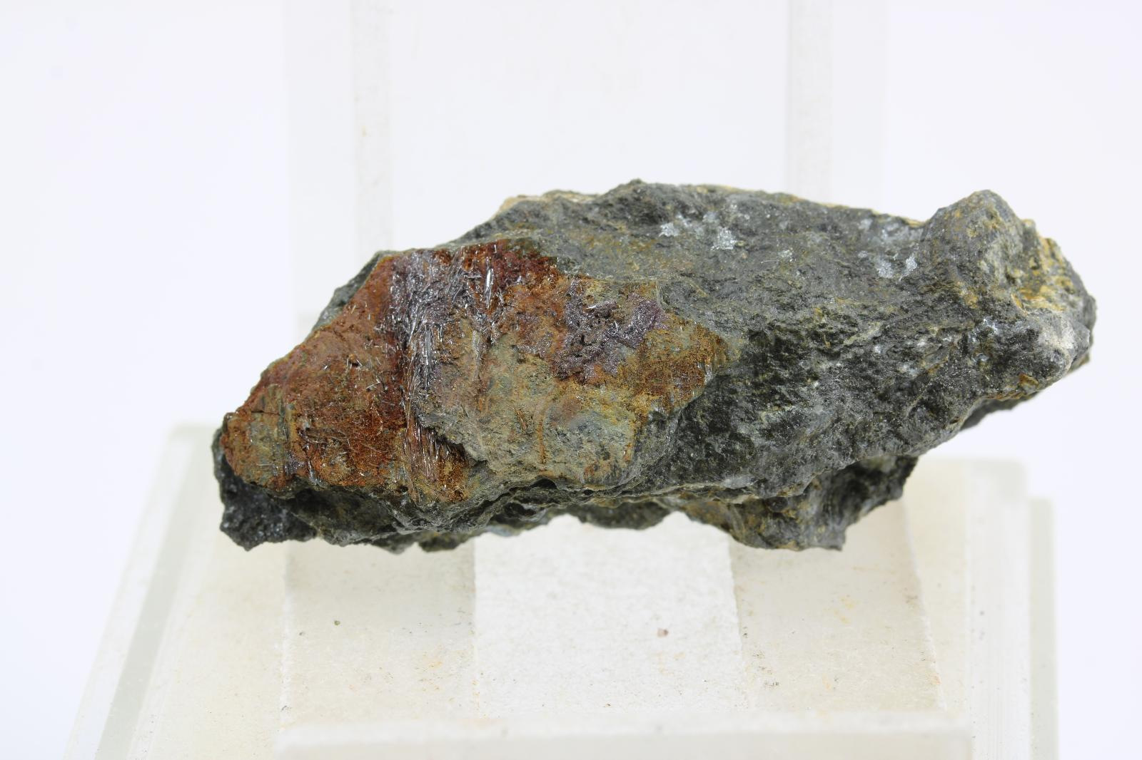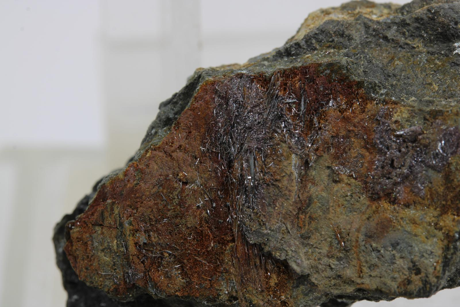 Kermezit s antimonitom, krajina pôvodu je Slovensko - Pezinok, rozmery vzorky sú cca: 5 x 2 x 1,5 cm.