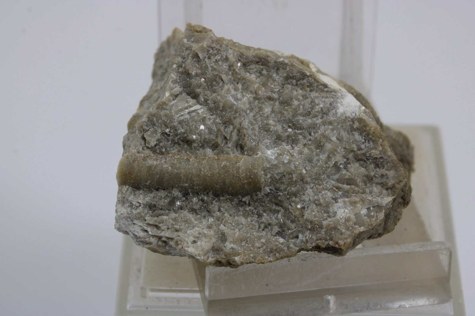 Časť laliovky z obdobia prvohôr - Devónu, krajina pôvodu je Česko - Praha - Podolí, rozmery vzorky sú cca: 4 x 3 x 4 cm, laliovka cca: 25 x 5 mm.