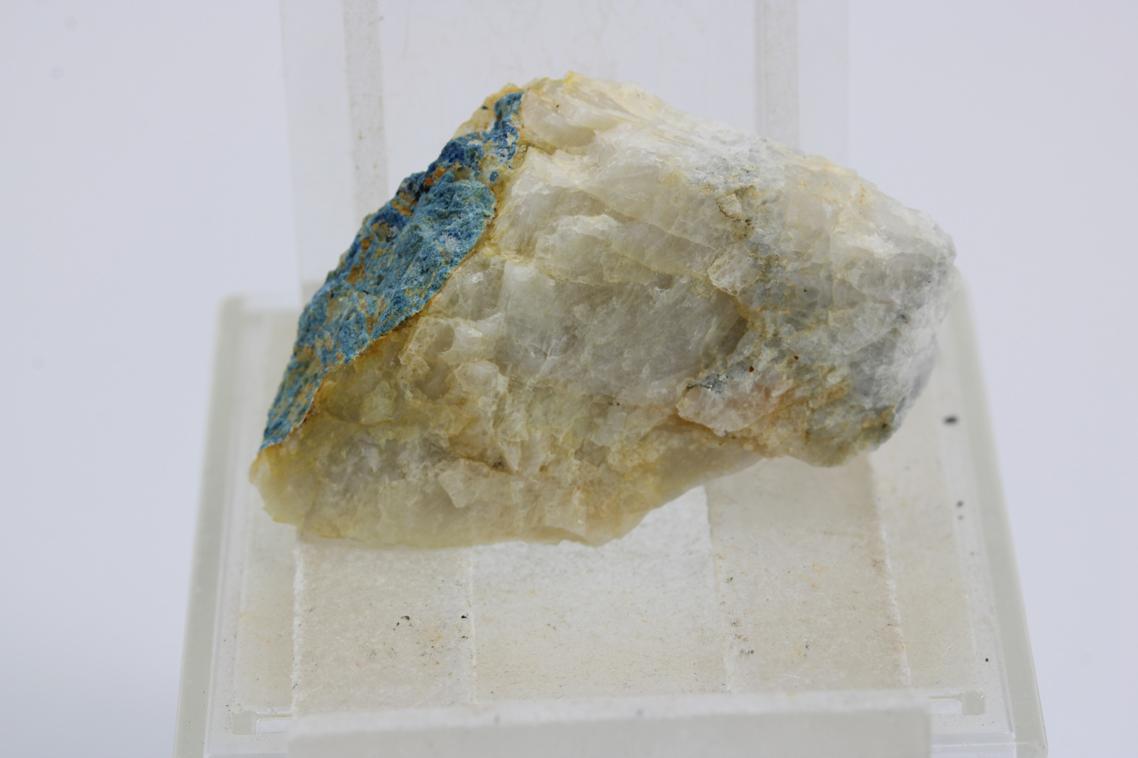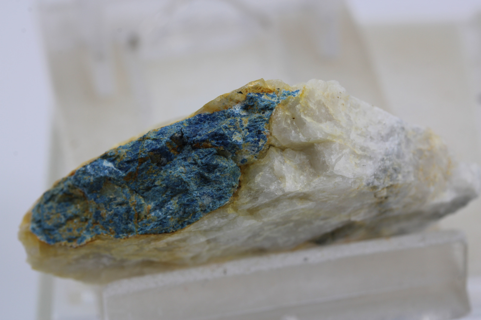 Lazulit na kremeni, rajina pôvodu je Slovensko - Kostoľany pod Tríbečom, rozmery vzorky sú cca: 4 x 3 x 1 cm.