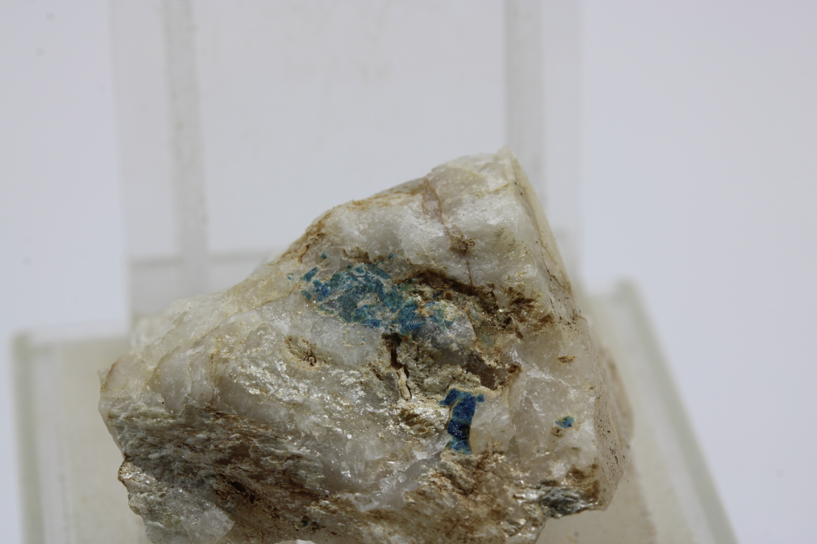 Lazulit so striebristým sericitom na kremeni, rajina pôvodu je Slovensko - Kostoľany pod Tríbečom, rozmery vzorky sú cca: 3 x 3 x 2 cm.