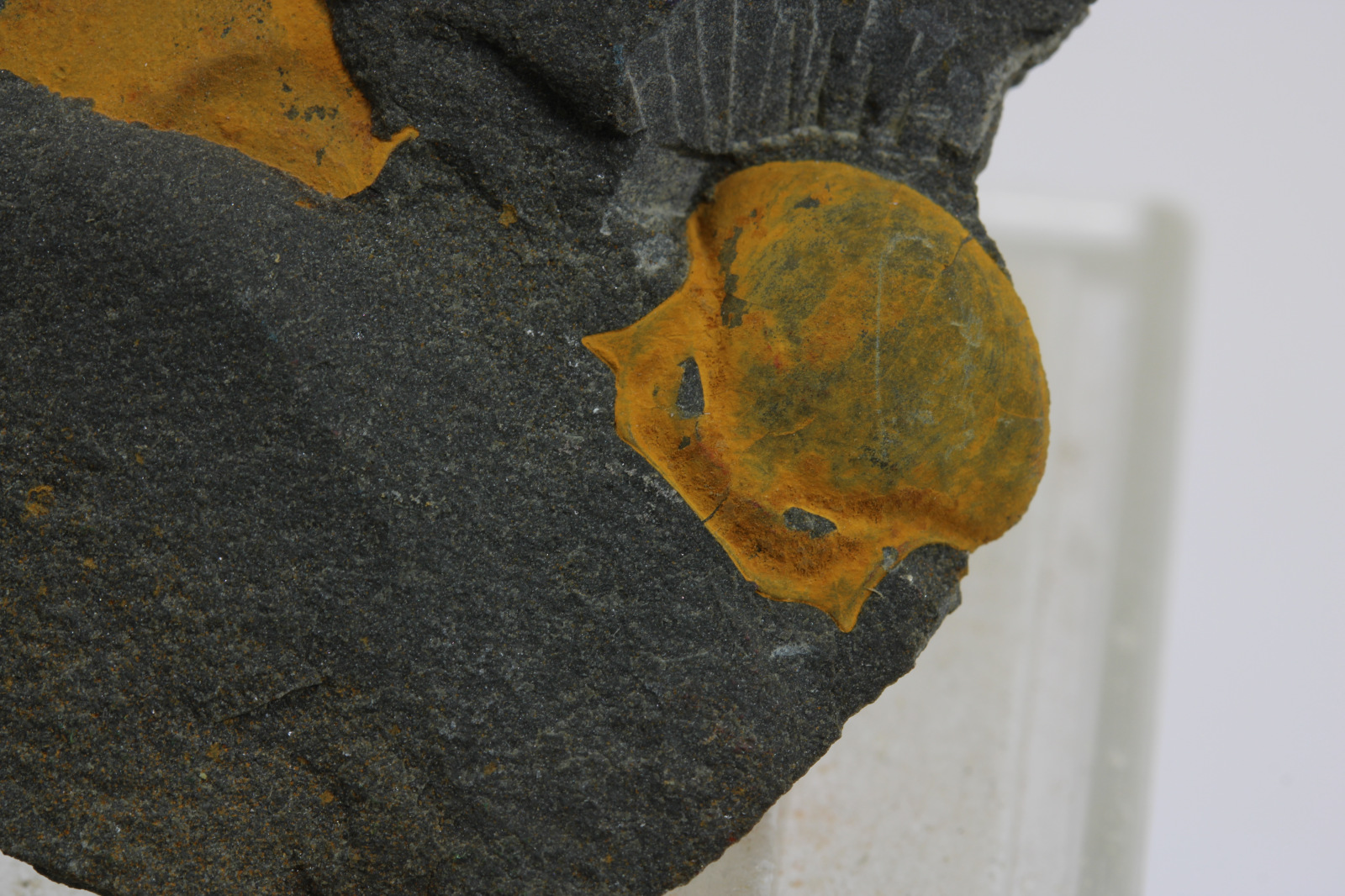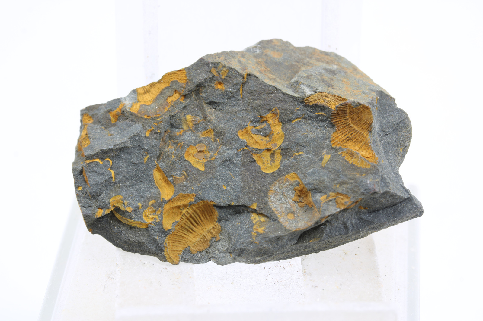 Odtlačky skamenelín z obdobia prvohôr, rozmery vzorky sú cca: 5 x 3 x 0,5 cm.