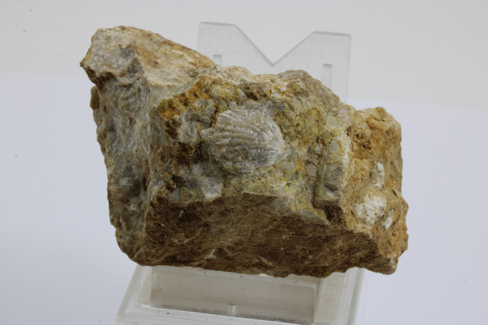 Ramenonožec z obdobia Devónu, krajina pôvodu je Česko - Plešivec - Koněprusy, rozmery vzorky sú cca: 7 x 4 x 4 cm, ramenonožca: 1,5 x 2 cm.