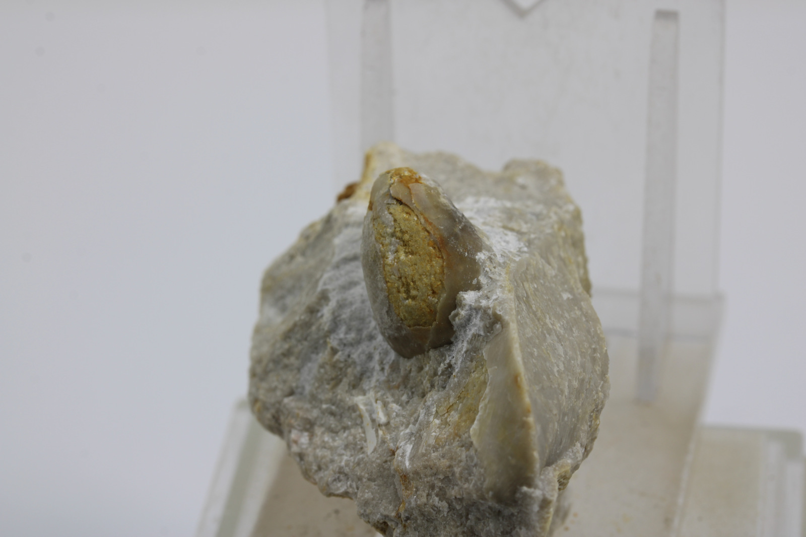Morský slimák ( Platyceras Praenetica gregarium) z obdobia prvohôr - Devónu, krajina pôvodu je Česko - kameňolom Homolák - Berounsko, rozmery vzorky sú cca: 5 x 3 x 3 cm, slimák cca: 2 x 1 cm.