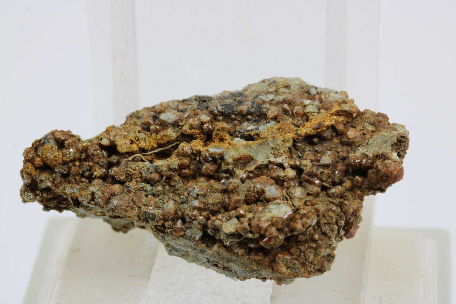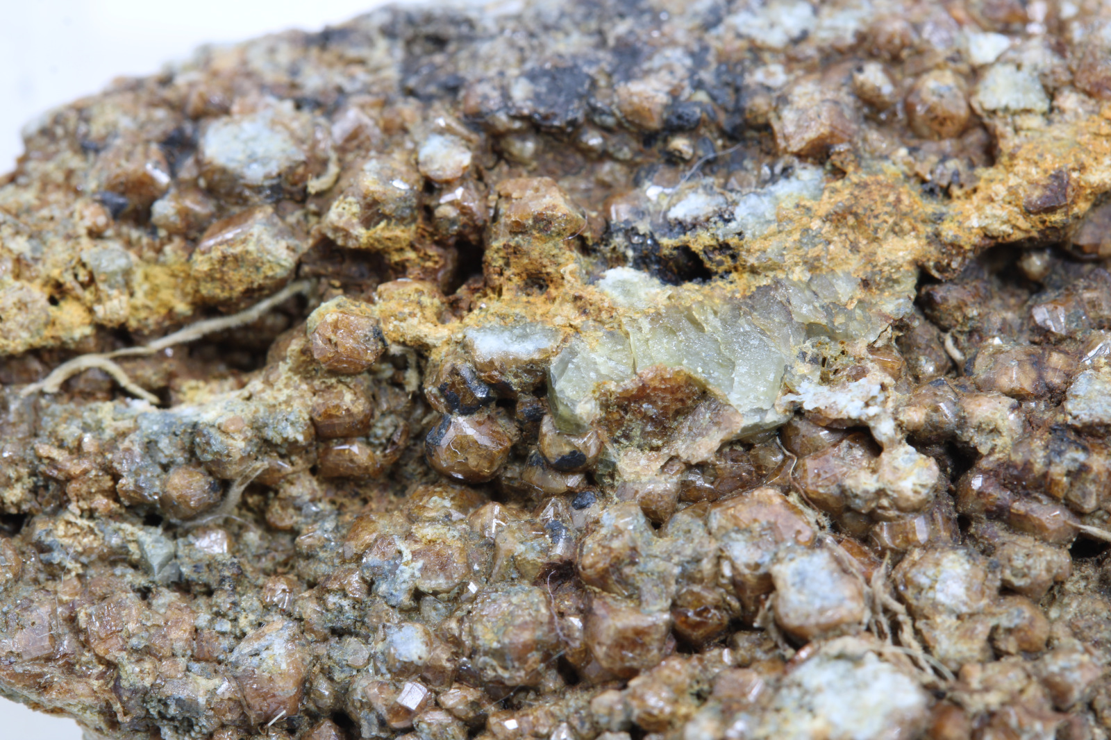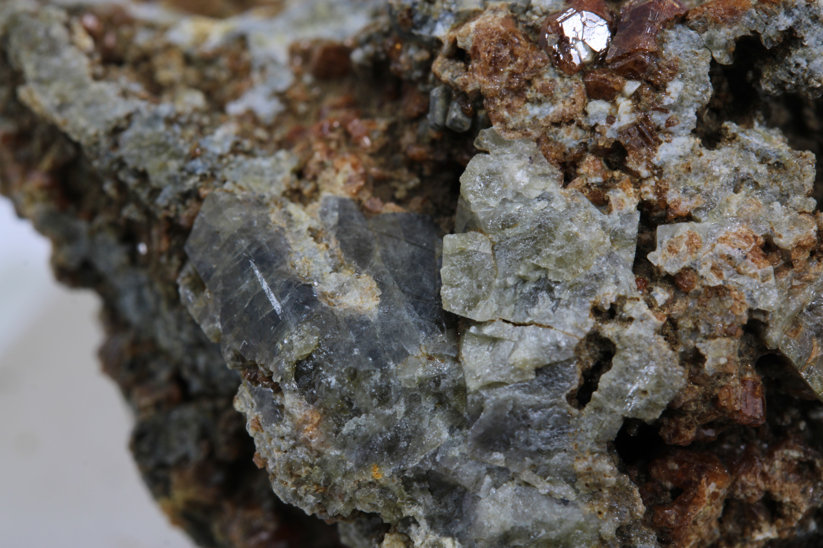 Bledozelený vezuvianit s hnedým grossulárom, krajina pôvodu je Slovensko - Bratislava - Rača, rozmery vzorky sú cca: 5 x 2,5 x 1,5 cm.
